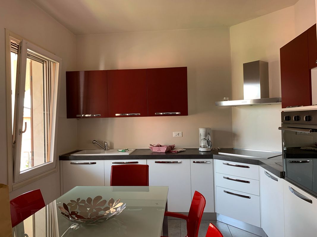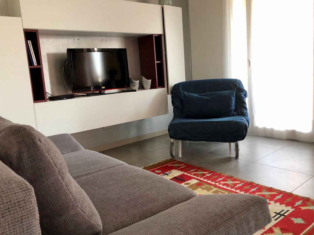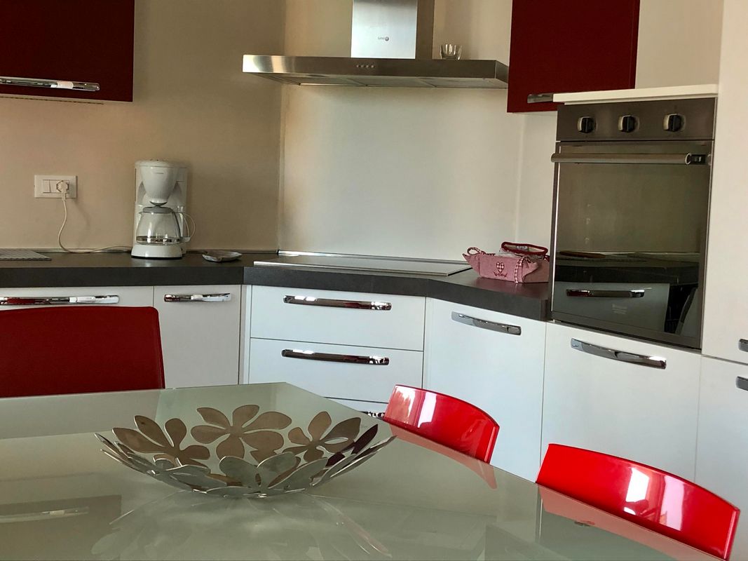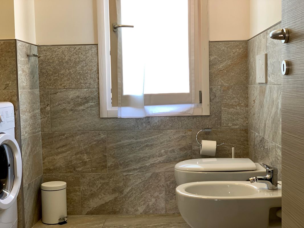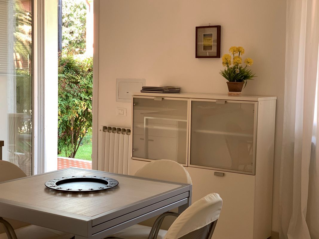 Ampia terrazza esclusiva con tavolo e sedie per pranzi all’aperto, parcheggio coperto, 2/4 sdraio, accesso all’area giochi e alla piscina del residence.